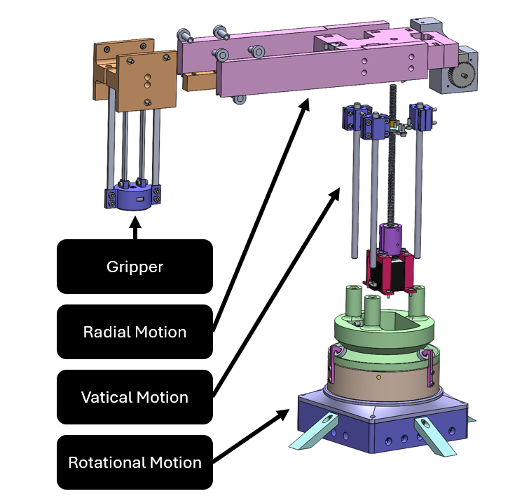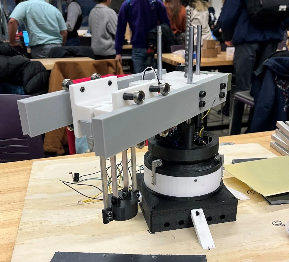This project was designed and built to fulfill the design project requirements of ME380. The crane utilizes an electromagnet to grasp ferrous objects and autonomously moves them to one of two predetermined locations.